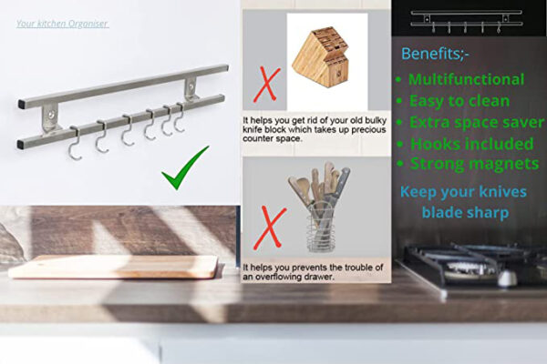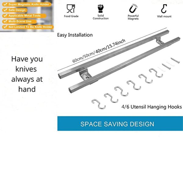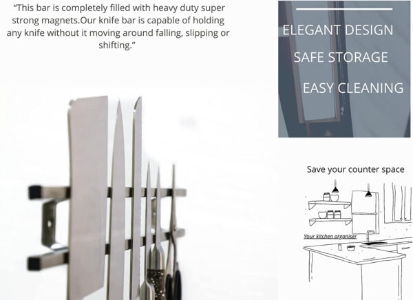 • Sujeción potente y segura – Imán de alta calidad que mantiene tus cuchillos firmes sin riesgo de caídas.