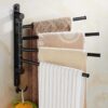 - Este toallero de 4 brazos en bronce admite múltiples usos, puede girar 180° y ahorrar espacio.