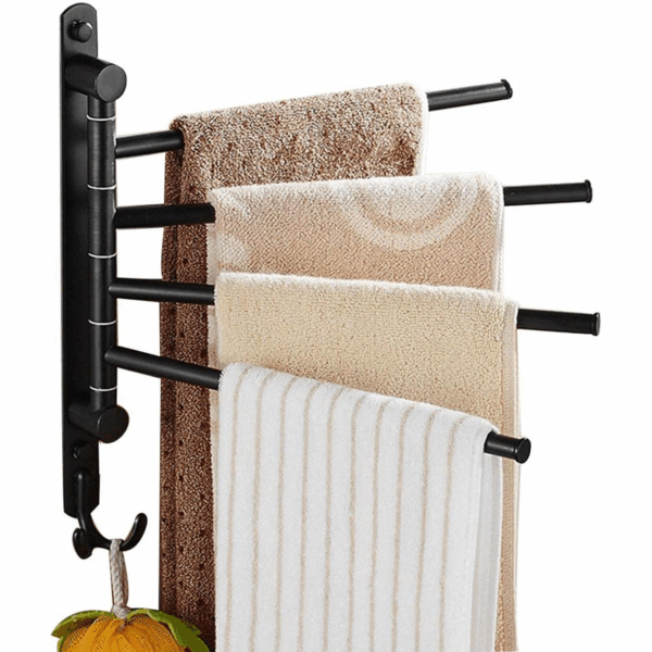 - Toallero giratorio, perfecto para colgar y organizar tus toallas faciales, de baño y ropa de forma ordenada.